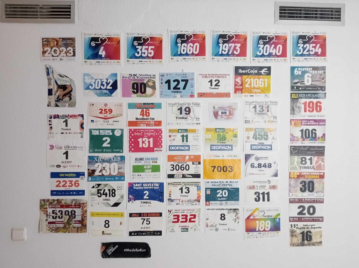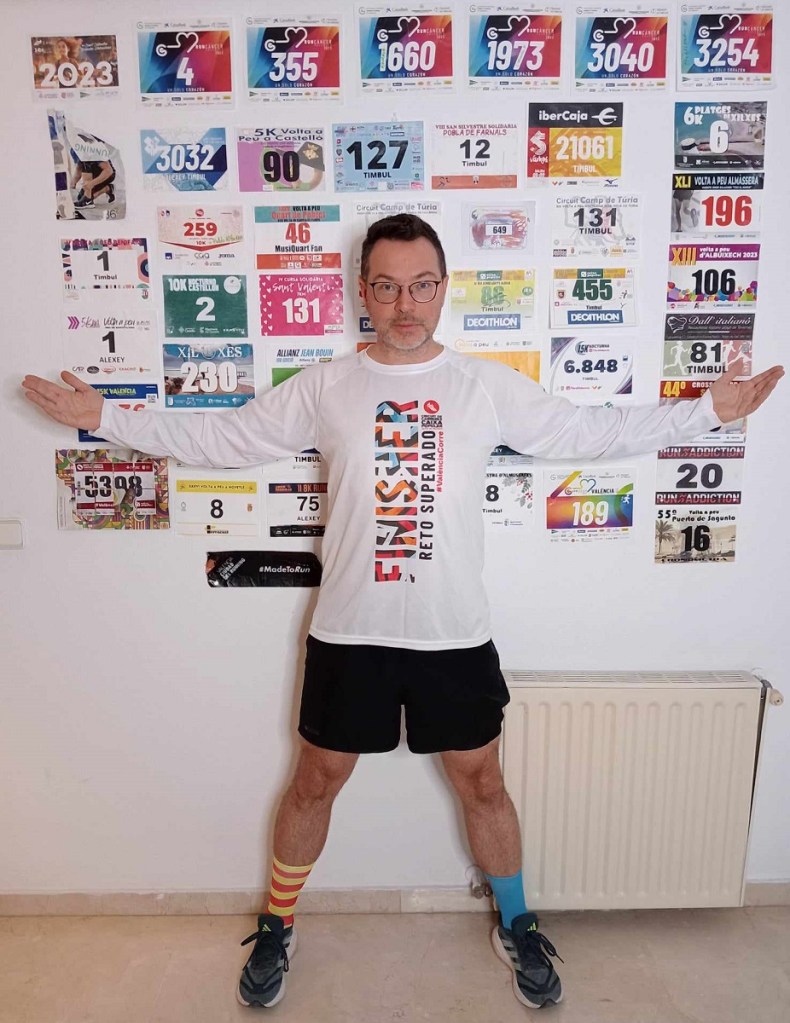 With my 60 race bibs and the 2023 Finisher shirt from the Valencia municipal circuit